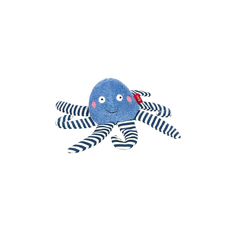 - The blue, 26 x 26 cm octopus has a friendly, embroidered face; terry cloth and cotton jersey are particularly soft on the child's skin and invite you to grip, feel and play