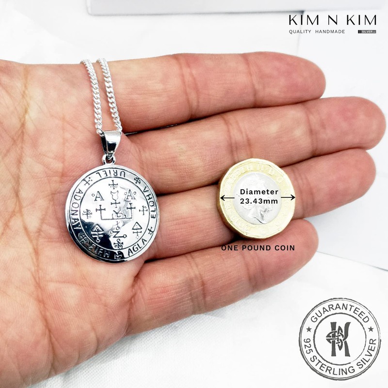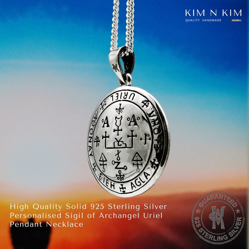 Sigil of the Archangel Uriel Pendant Necklace, Seal, Occult, Ritual, Free Engraving,Solid 925 Sterling Silver,Quality - KIMNKIM D2-2