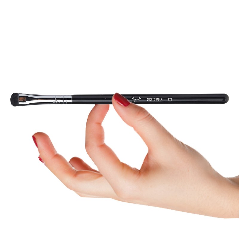 The E20 Short Shader features a small, soft brush head great for smudging out color along the lash line. Offers superb control when applying color to very small areas of the eye. EXCLUSIVE FEATURES: SigmaTech Fibers - Sigma Beauty's exclusive selection of high performance synthetic fibers engineered to outperform traditional animal hair. Features technologically advanced filaments with specialized tips developed to hold and deliver cream and powder products without any absorption into the bristles. Built to last, SigmaTech fibers are hypoallergenic, and will maintain its original shape and color even after multiple washes. Ferrules - The patented 3-ring brush ferrule is made with high performance SigmaAlloy for durability and strength. Patent No. D718060. Handles - Each brush handle is made from a lightweight, sustainable source of wood which receives 8 coats of paint, making them scratch resistant and guaranteed to last. 2013 Sigma Enterprises, LLC