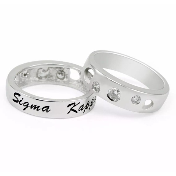 You are purchasing a beautiful Sigma Kappa sterling silver ring, set with cubic zicronia and is created exclusively by our company. The piece is hand crafted and polished to a dazzling shine.