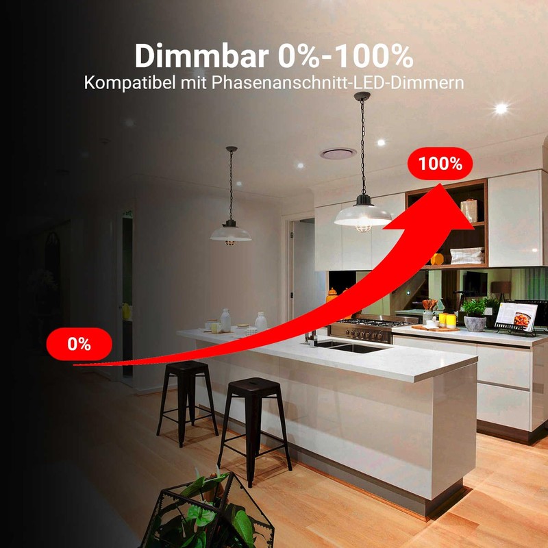 • Dimmable: dimmable ceiling LED recessed spotlight for false ceilings and plasterboard. High light output, 5W 450 lumens, equivalent to a 50W dimmable with phase control LED dimmer (TRIAC)