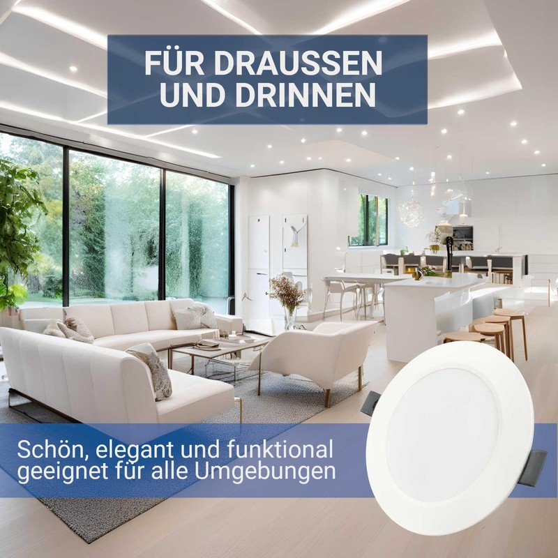- Splash resistant: IP44 LED recessed spotlight resistant to splashes, water, moisture, dust, ideal for outdoor and indoor use: bathroom, kitchen, patio, porch, living room