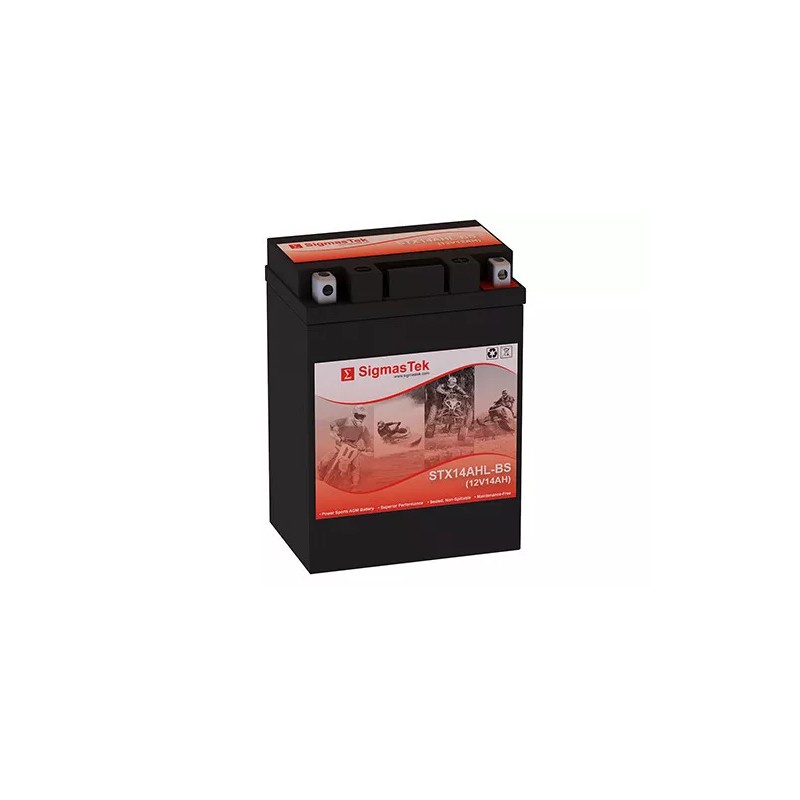 - This is a genuine SigmasTek STX14AHL-BS motorcycle battery that is AGM Maintenance Free.