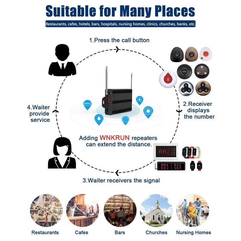 - The signal amplifier with wireless pager system for restaurants, coffee, home care, and hospital service alerts