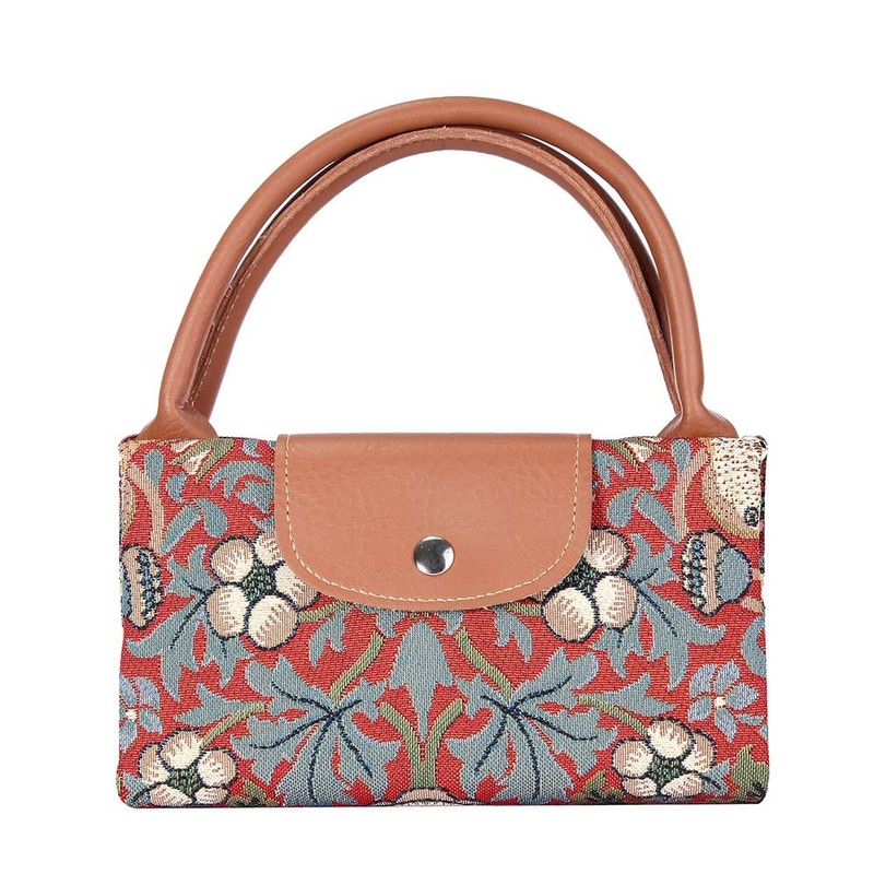 Signare Folding Re-Usable Shopping Grocery Fold Away Bag (Strawberry Thief Red)