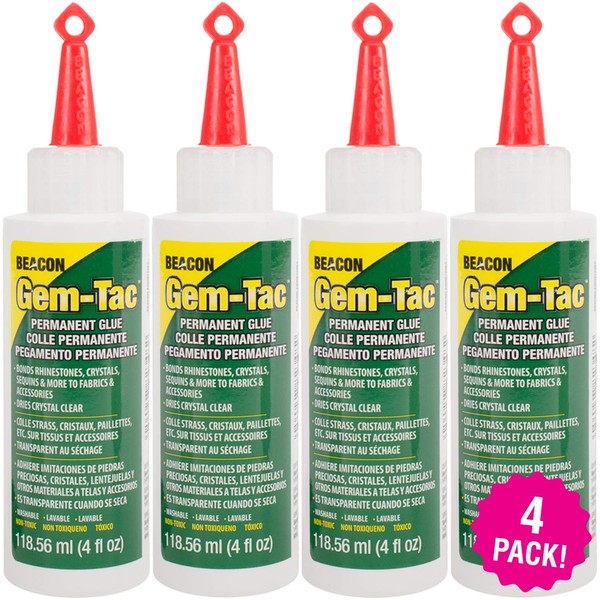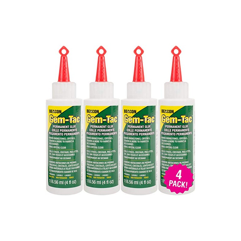 • BEACON-A permanent adhesive. Bonds gems, sequins, glitter, and rhinestones to fabrics. Bonds fabrics to glass, vinyl, metal, and patent leather. A great multi-purpose adhesive. Washable, d dries crystal clear. Contains 4 ounces.Non-toxic, non-flammable. Keep from freezing. Conforms to ASTM D 4236