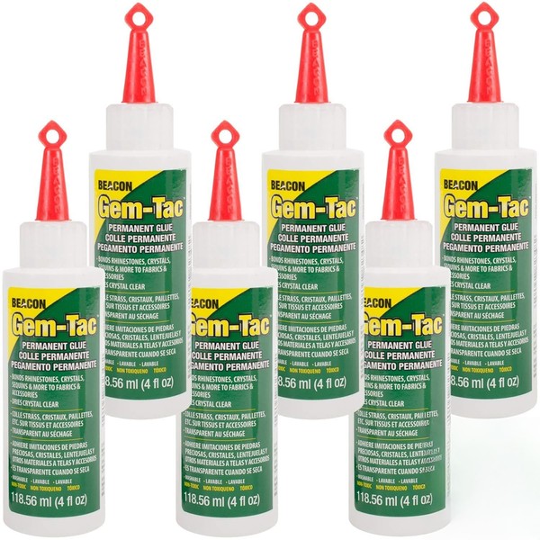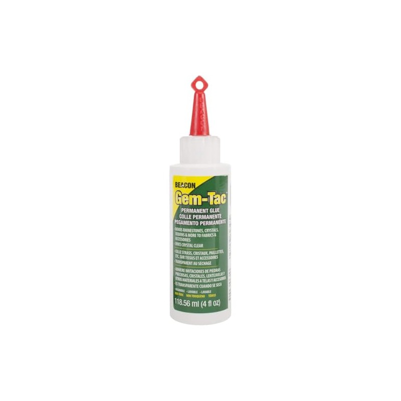 - BEACON-A permanent adhesive. Bonds gems, sequins, glitter, and rhinestones to fabrics. Bonds fabrics to glass, vinyl, metal, and patent leather. A great multi-purpose adhesive. Washable, d dries crystal clear. Contains 4 ounces.Non-toxic, non-flammable. Keep from freezing. Conforms to ASTM D 4236