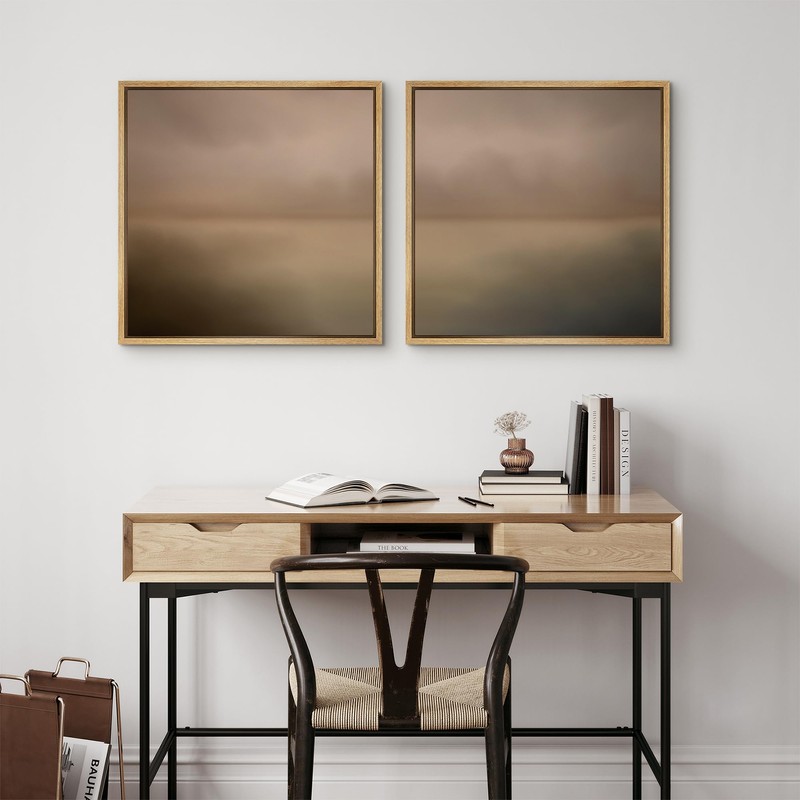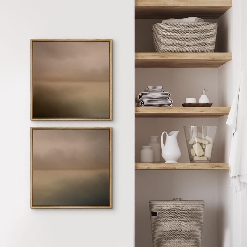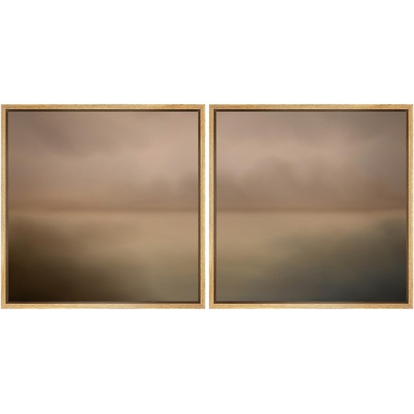 SIGNFORD Framed Canvas Print Wall Art Set Minimalist Neutral Horizon Soft Blurred Landscape Illustrations Modern Art Minimal Relax/Calm for Living Room, Bedroom, Office - 16"x16"x2 Natural