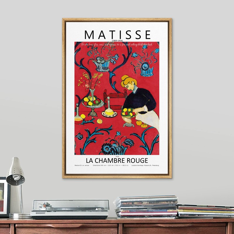 SIGNLEADER Framed Canvas Print Wall Art Henri Matisse The Red Flower Room Nature Wilderness Illustrations Fine Art Rustic Scenic Relax/Calm Colorful for Living Room, Bedroom, Office - 24"x36" Natural