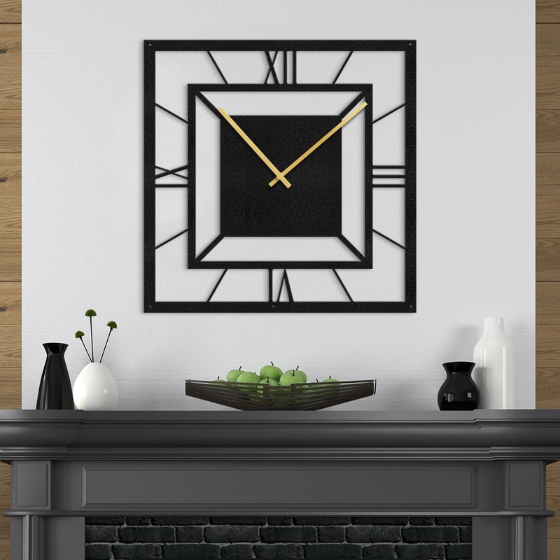 SIGNLEADER Metal Wall Clock Decor Wall Art Silent Battery Operated, Bold Quadrilateral Roman Numeral Wall Sculpture Clock Hanging Home Decoration for Living Room Bedroom, Bathroom Kitchen - 24" Black