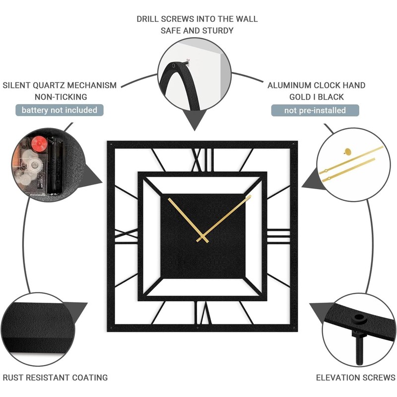 - 【Safe & Sturdy】Our metal wall clock requires screws to be driven into the wall then safe and sturdy. It runs on a single AA battery (not included in the package). The average battery can last more than 1 year. We also equip you with detailed installation instructions and a strong after-sales customer service team.