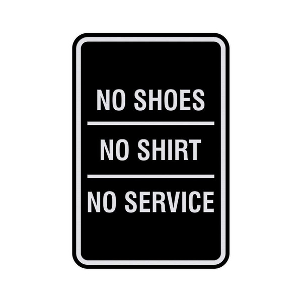 Signs ByLITA Portrait Round No Shoes No Shirt No Service Sign with Adhesive Tape, Mounts On Any Surface, Weather Resistant, Indoor/Outdoor Use (Black/Silver) - Medium