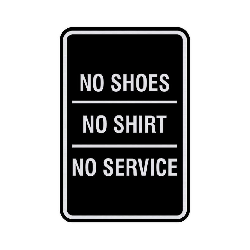 - Beautifully designed Signs ByLITA Portrait Round No Shoes No Shirt No Service Sign with Adhesive Tape, Mounts On Any Surface, Weather Resistant, Indoor/Outdoor Use for your home, office, business or school.
