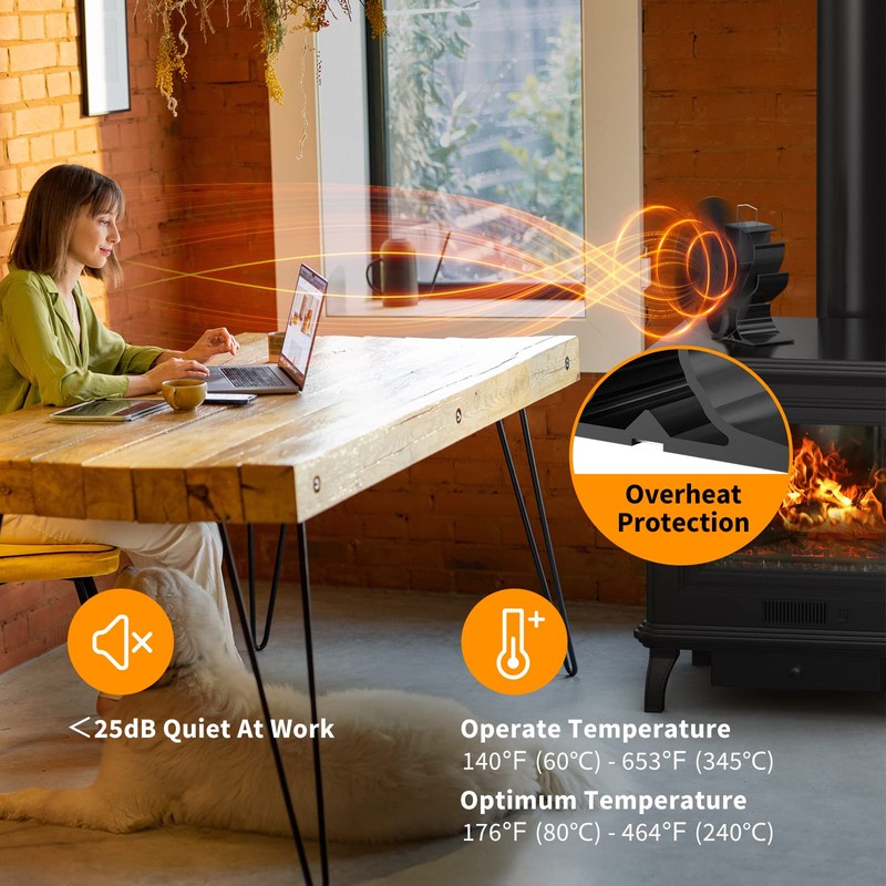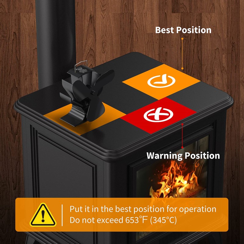 - Automatic start: The heat-powered stove fan is designed to circulate the warm air generated by wood/coal or pellet burning. Circulates warm air efficiently throughout the room 662°F (350°C).
