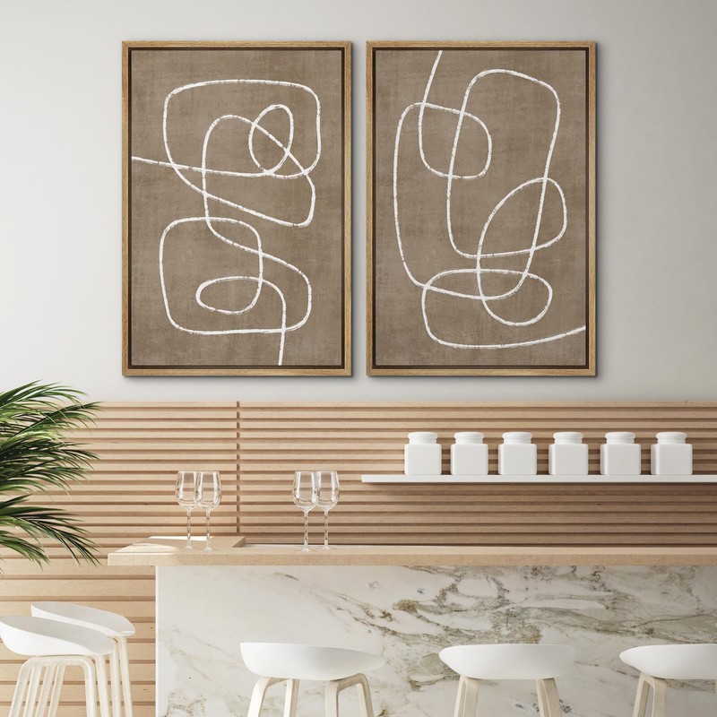 SIGNWIN Framed Canvas Print Wall Art Set Geometric Mid-Century Spiral Collage Abstract Shapes Cozy Neutral Minimal Decorative Nordic Zen Bohemian for Living Room, Bedroom, Office - 16"x24"x2 Natural
