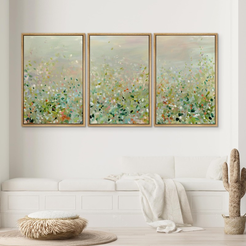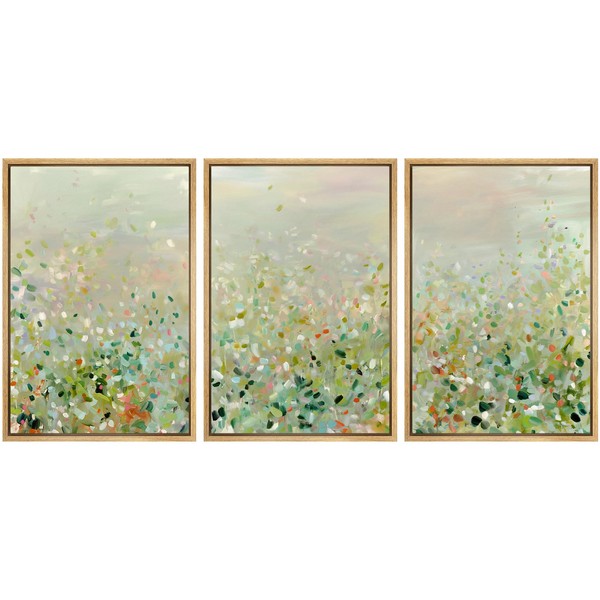 SIGNWIN Framed Canvas Print Wall Art Set Soft Meadow Breeze Abstract Pastel Impressionist Floral Illustrations Modern Art Decorative Rustic Zen for Living Room, Bedroom, Office - 16"x24"x3 Natural