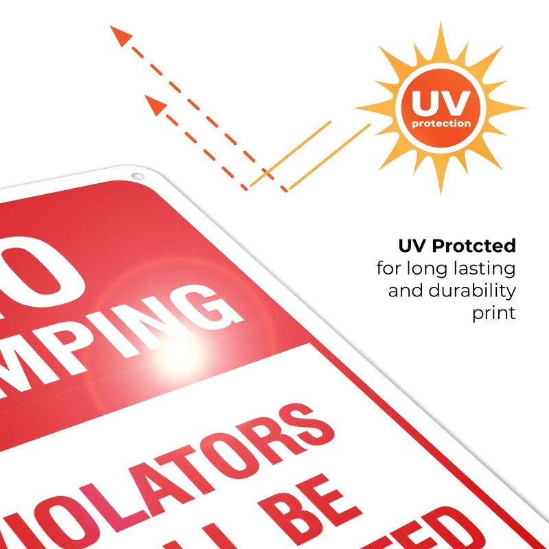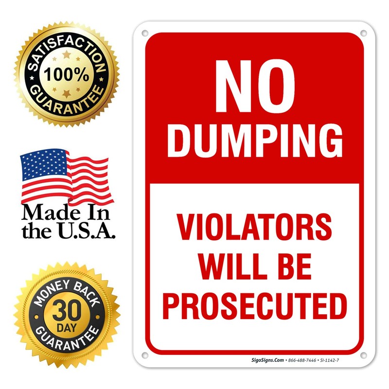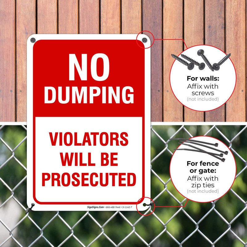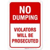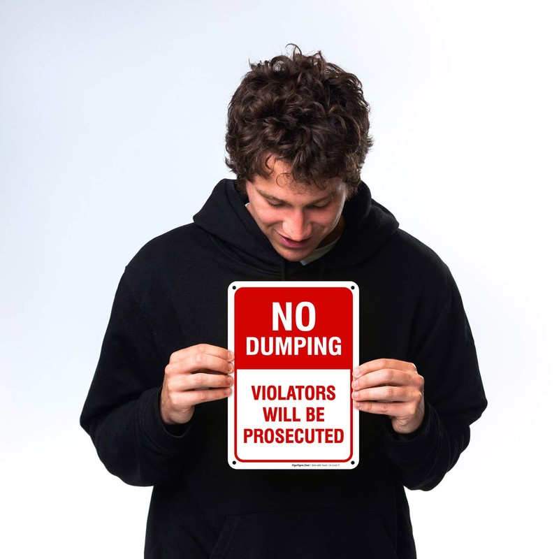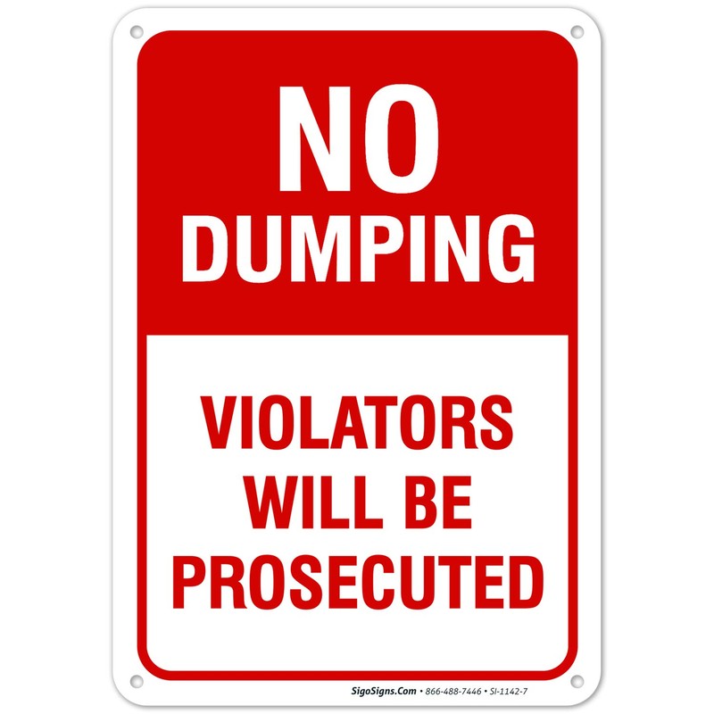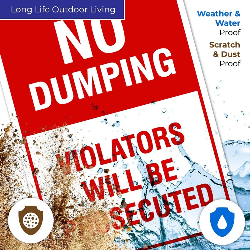 Sigo Signs No Dumping Sign, Violators Will Be Prosecuted Sign, Red Background, 10x7 Inches, Rust Free .040 Aluminum, Fade Resistant, Easy Mounting, Indoor/Outdoor Use, Made in USA