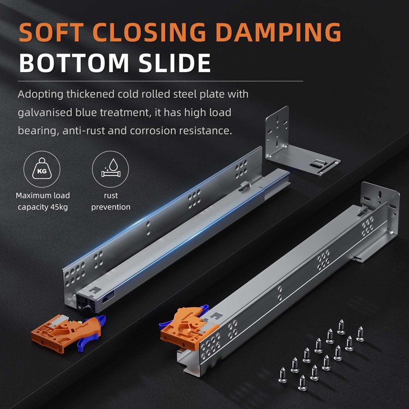 - - 3-Fold Full Extension: Allows for easy access to the entire drawer's storage space. Adjustable locking device for quick installation and disassembly, providing convenience and flexibility.