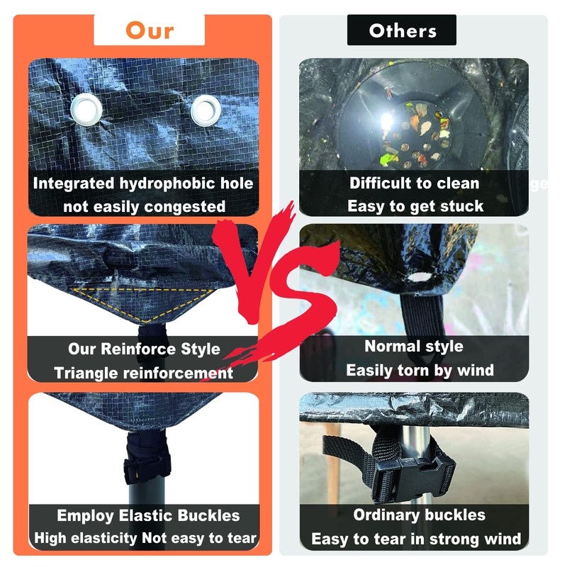 - HYDROPHOBIC FABRIC: Choose environmentally PE waterproof material. And add four drain holes to prevent hydrops from crushing trampoline springs on rainy days. The surface has a special waterproof layer, preventing rain, dust, snow, and bird droppings... Effectively prevent these natural factors. All-day protection ensures you can leave your trampoline outside, even in harsh weather conditions