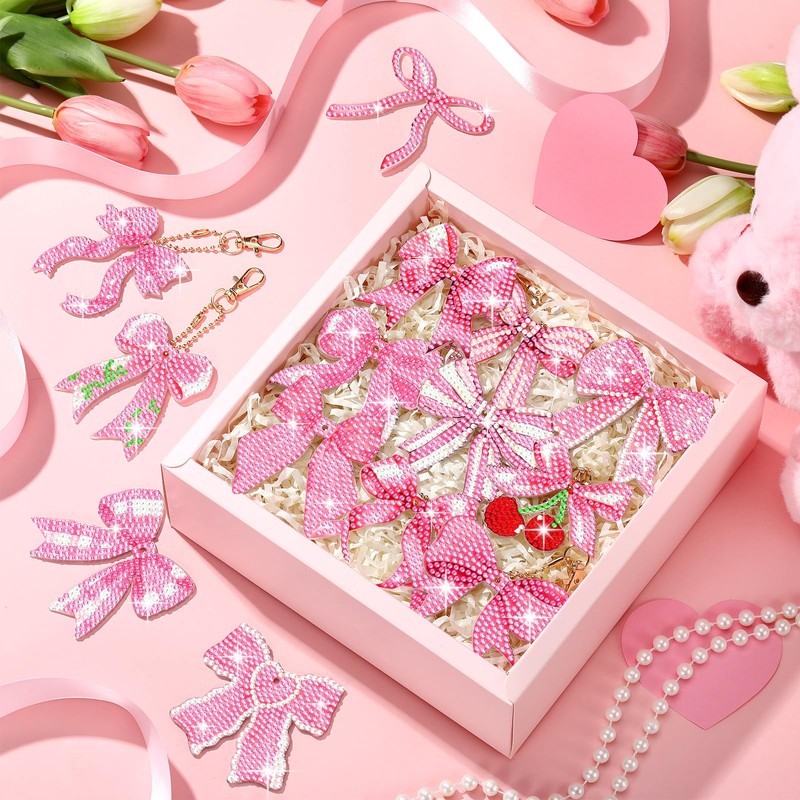 Siifert 15 Pcs Pink Bow Diamond Art Keychains Coquette Party Favors Diamond Painting Keychain Kit 5d Pink Bow Hanging Ornaments DIY for Adults Adults Beginner DIY Crafts Bachelorette Party Gifts