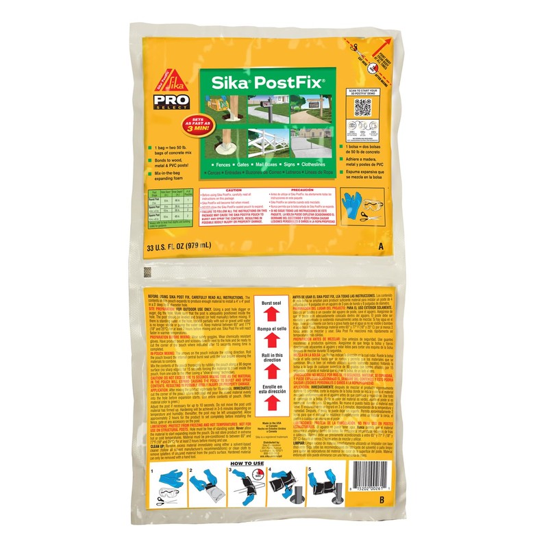 Sika Postfix Fence Post Mix, Mix-in-The-Bag Expanding Foam for Supporting Non-Structural Posts, Fence, Mailbox, and Sign Posts