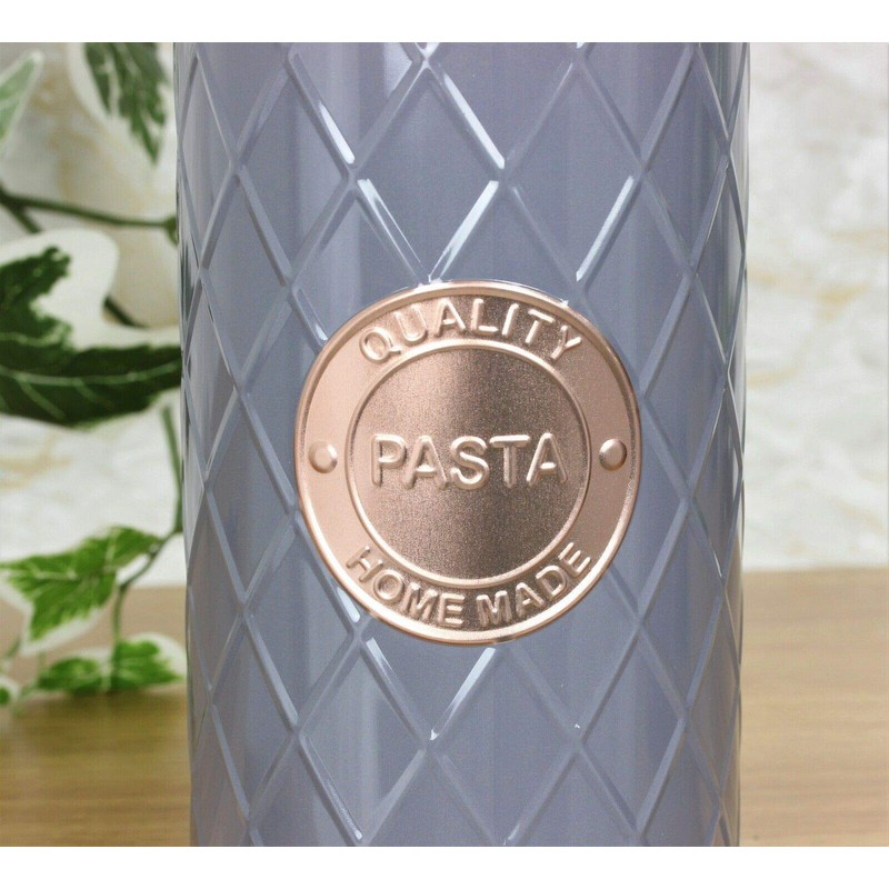 SIL Grey & Copper Metal Pasta Storage Tin Box Canister