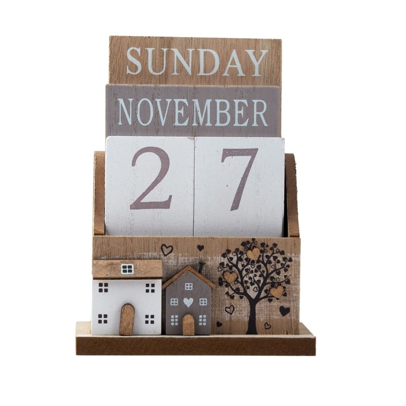 SiL Interiors Wooden Perpetual Calendar Desktop Eternal Calendar Blocks - House Tree Design