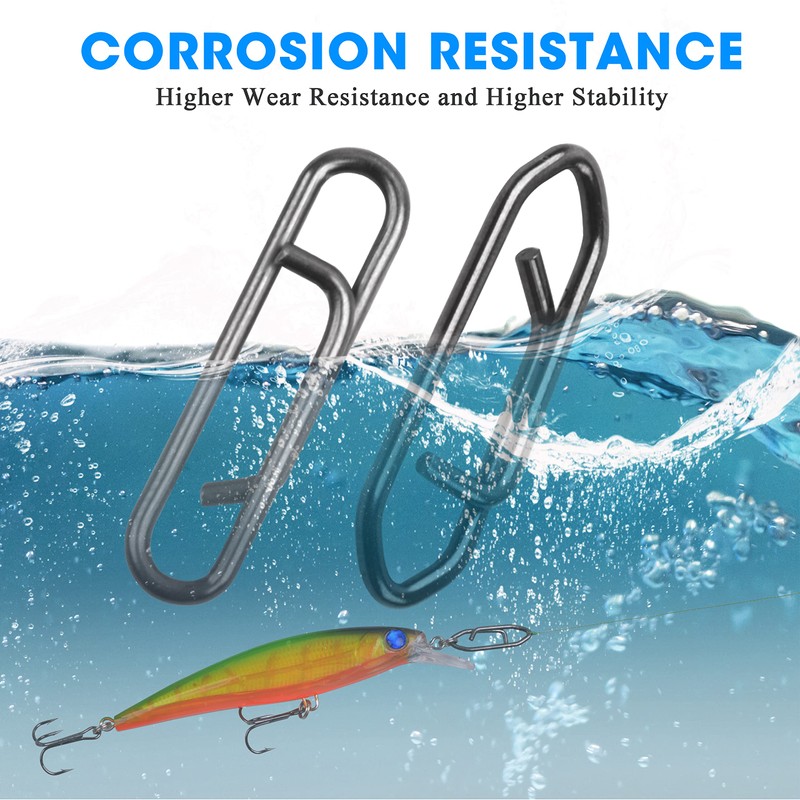 - HIGH STRENGTH: Fishing quick clips made of stainless steel with black nickel,smooth surface,high hardness,abrasion resistance and corrosion resistance. Fit for saltwater freshwater fishing.