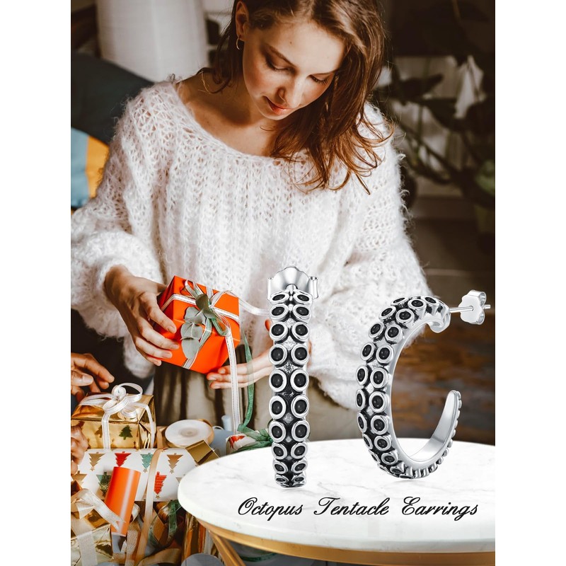 • ✨Dainty Earrings✨ The octopus tentacle earrings are a unique and stylish accessory that will add a touch of sophistication to you, whether it is for everyday wear or a special occasion. The octopus open hoop earrings comes with an exquisite box for gift giving to octopus lovers.