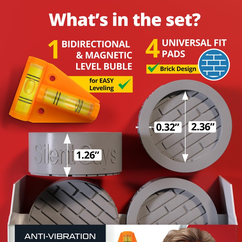 - [ FLOORING PROTECTION ] No scratches on the floor! Moreover, our anti vibration pads for washing machines protect the floor better than spongy washer rubber pads. The Silent Guys' washer dryer anti vibration pads prevent slipping and offer a firm grip on surfaces.