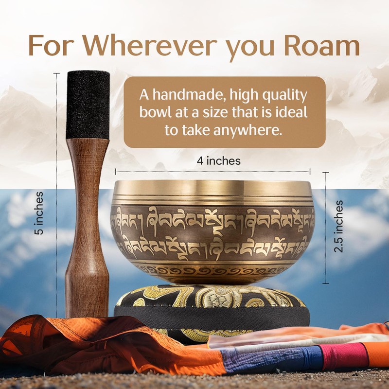 - Enhance Your Practice: Elevate your meditation sessions with our Tibetan singing bowl. Whether used as a meditation bell, mini gong, or part of your sound bath instruments, this Tibetan bowl set promotes relaxation and mental clarity, enriching your sound therapy and spiritual practices. Perfect for incorporating Tibetan bells and sound bowls.