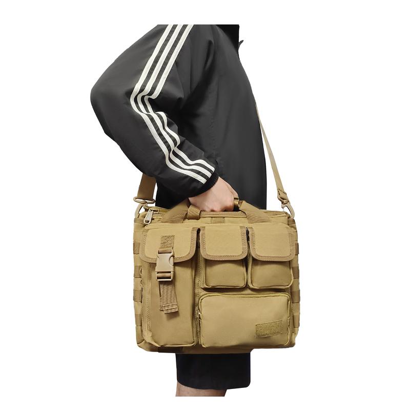 Silfrae Military Briefcase 15.6Inch Tactical Laptop Messenger Bag Laptop for Hiking, Cycling, Camping and Daily Use - Color: Khaki