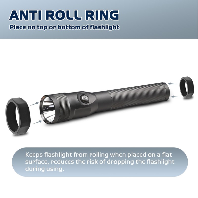 Preventing Rolling: The primary function of an anti-roll ring is to prevent the flashlight from rolling away when placed on a surface. This is particularly useful in dark environments where losing the flashlight could be inconvenient or dangerous.