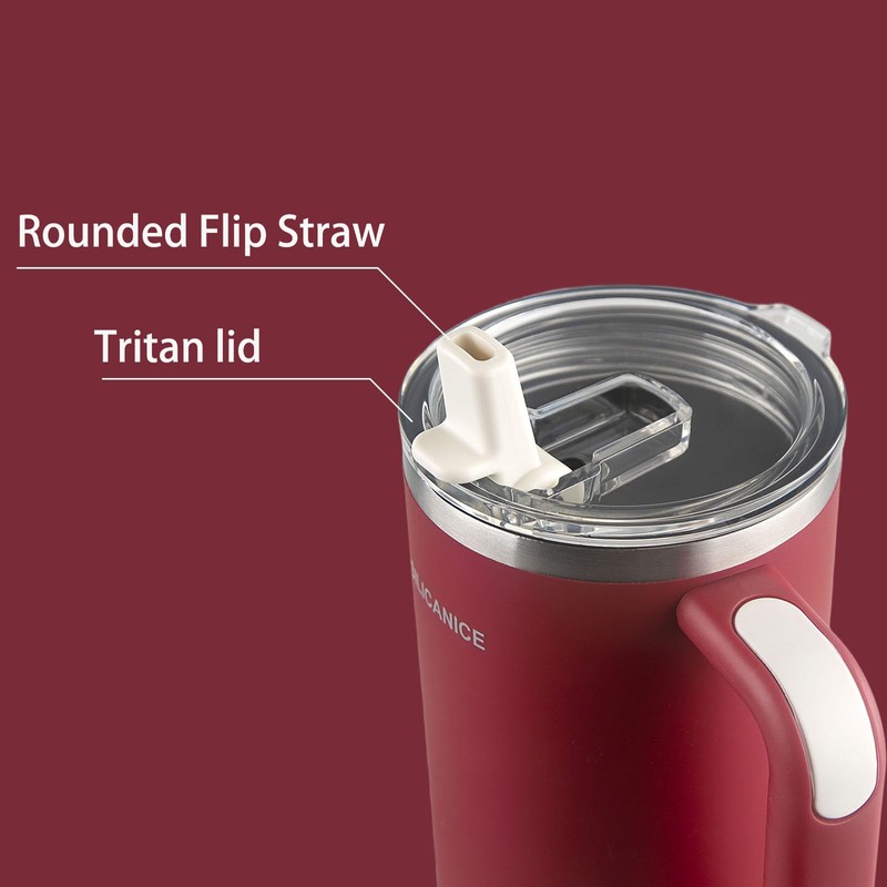 SILICANICE Red Soft Touch Body & Detachable MacStraw,40 Oz Stainless Steel Insulated Tumbler with Deep cleaning Straw & Handle,Dishwasher Safe, Thermal Cup for Cupholder Compatible for Travel
