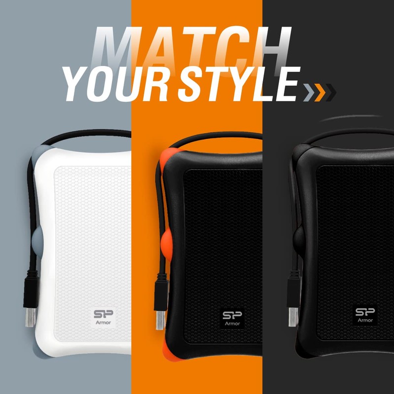 Silicon Power Armor A30 1TB Rugged External Hard Drive, Military-Grade Shockproof USB 3.0 Portable HDD for PC Mac Laptop Computer - Black
