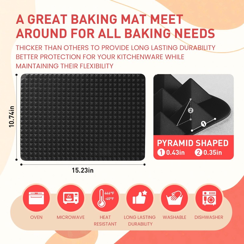- Silicone Baking Sheets for Oven: Now You Can Make Your Food More Crisp, Juicy, and Evenly Cooked. All You Have to do is Put Your Food on This Raised Cone Shaped Pan While Baking Then Watch the Fat and Oil Drips Away From the Food, Avoiding it From Sticking to the Baking Tray. Definitely a Time Saver;