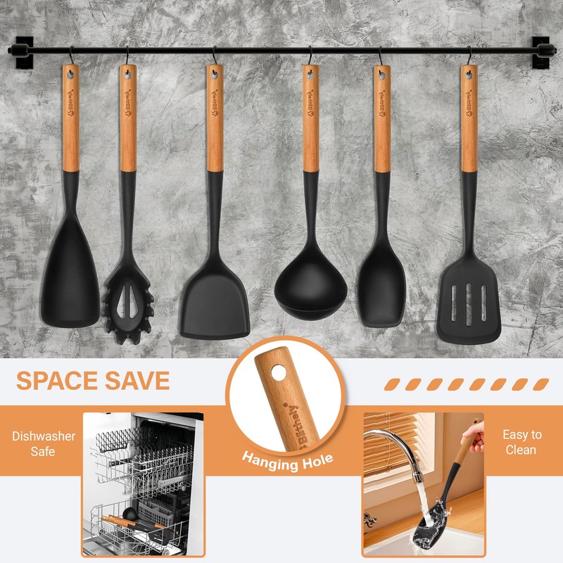 - 🍳【Perfect Customer Service】These silicone kitchen utensil set are very easy to clean. They will get very clean after hand washing with warm water and soap. If you find any questions, please feel free to contact us for help. We can offer 24 hours service online by email, free-exchange and refund are available if you have any problem while using our kitchen utensil sets.