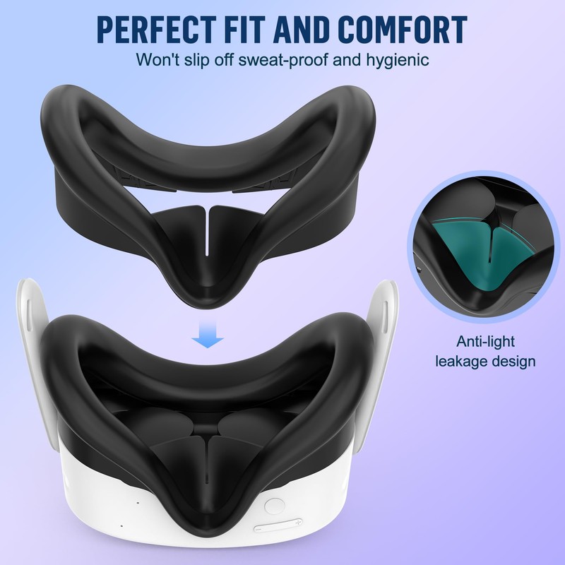 - Enhanced Comfort for Extended Play: The VR Face Cover is made from soft, skin-friendly silicone that prevent sweat buildup, ensure comfortable during extended vr gaming. Nose light-blocking design allowing for a more immersive VR experience.
