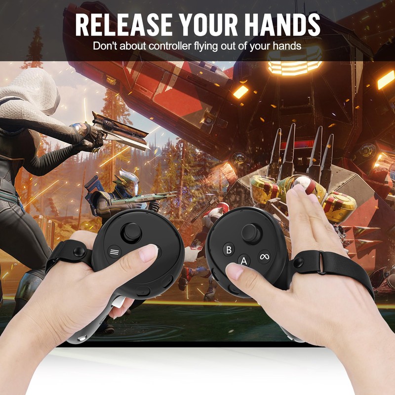 - Anti-Slip Adjustable Controller Grip: Controller grips for oculus quest 3S with adjustable hand knuckle straps to fit various hand sizes, feature an anti-slip texture, ensuring a firm grip during gaming and preventing accidental drops.