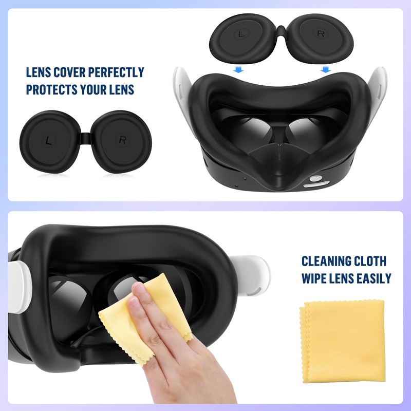 - Comprehensive Protection for Quest 3S: Silicone cover set for Meta Quest 3S offers full protection for your device, including 1* VR Headset Protective shell covers, 2* Controller Grips, 1*Face Cover, 1*Lens Cover, 1*Lens Cleaning cloths,2*Shakes Stick Cap, Keeping your Meta Quest 3S safe from scratches, drops, ensuring long-lasting durability and extend the life of quest 3S.