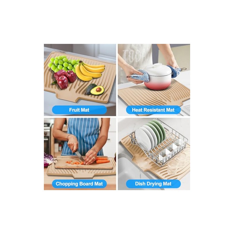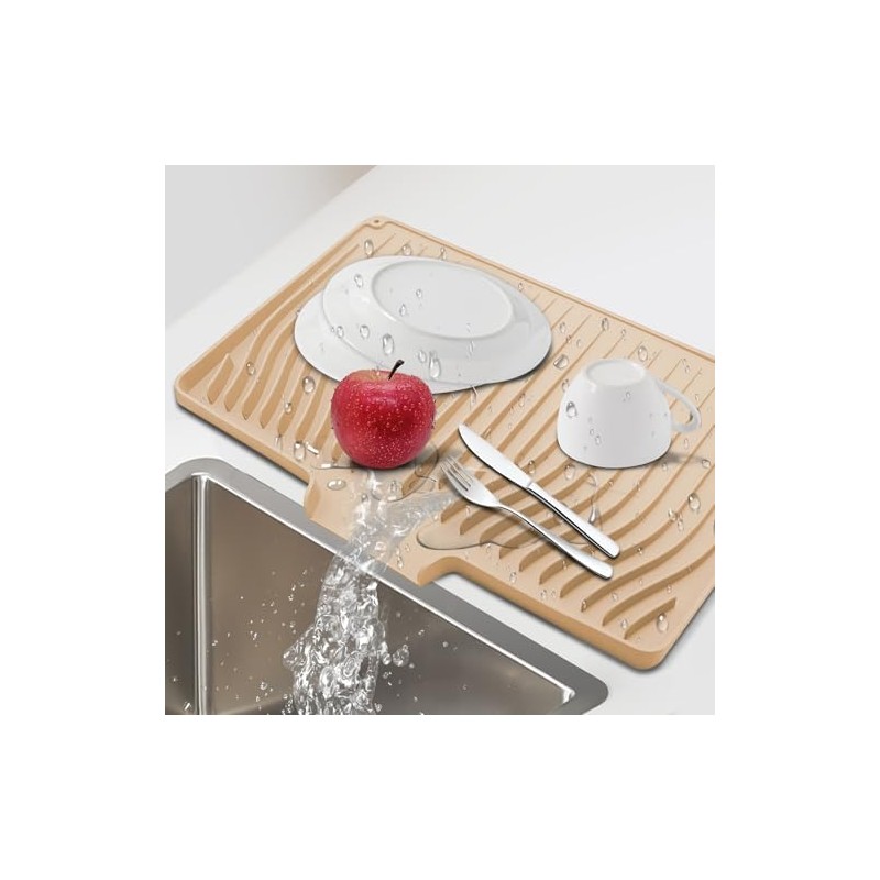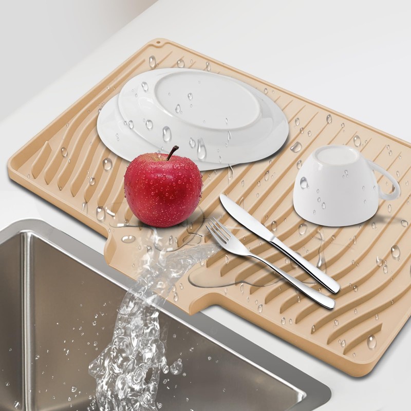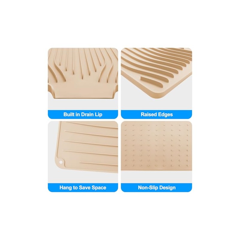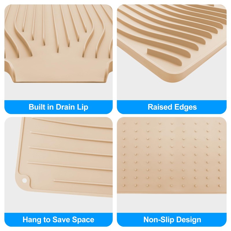 Silicone Dish Drying Mat for Kitchen Countertops and Sinks,19 x13.7 Inch Non Slip Heat Resistant Mat with Built In Drainage System,For Refrigerator and Drawer Liners (beige, 19 x13.7 Inch)