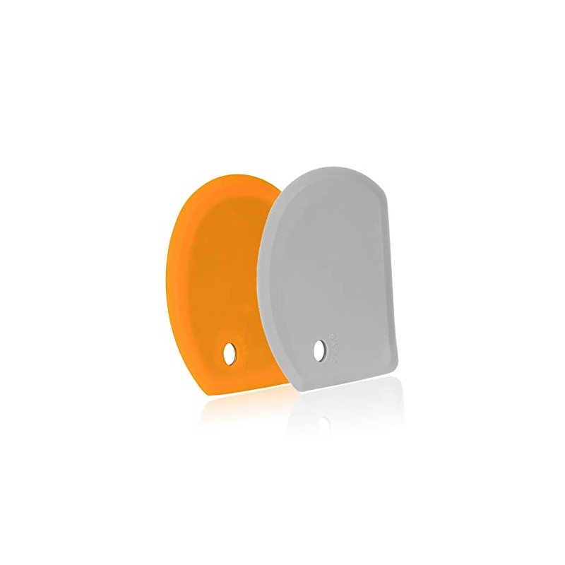 Silicone Dough Scraper with Stainless Steel Sheet, Curved Edge Flexible Bowl Scraper for Baking , Food Grade Silicone Bench Scraper for Sourdough Bread Proofing Basket , Set of 2, Gray & Orange ,SAPID