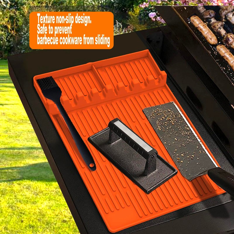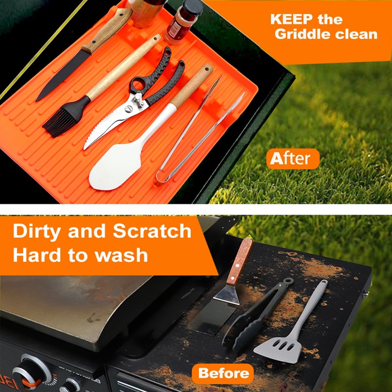 Silicone Grill Mat, Reusable blackstone griddle accessories,Side Shelf Mat Grill Pad,Silicone Griddle Tools Mat with Drip Pad,Outdoor cooking tools & accessories