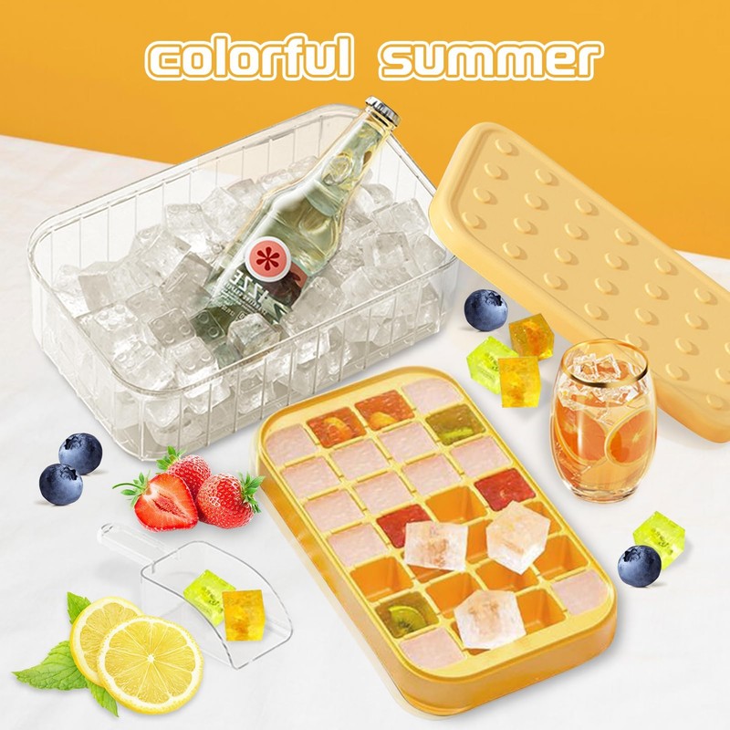 Silicone Ice Cube Tray with Stackable Bin and Scoop - Easy Release Ice Cube Trays for Freezer, Large Capacity, Quick Freezing, Dishwasher Safe - Perfect for Home & Kitchen