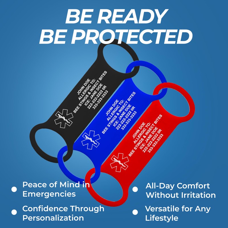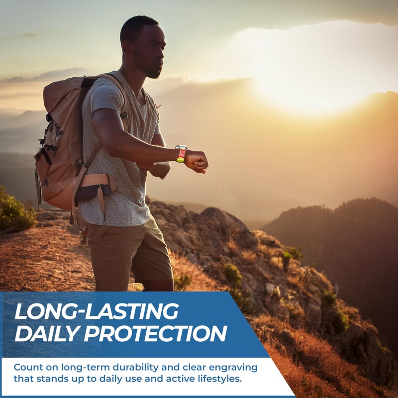 - Durable, Comfortable & Waterproof Silicone Medical Tag: Made from soft, hypoallergenic silicone, this emergency ID tag is lightweight, flexible, and waterproof—perfect for daily wear, fitness, swimming, and active lifestyles. Designed for anyone needing a reliable silicone medical tag that won't fade, chip, or wear out.