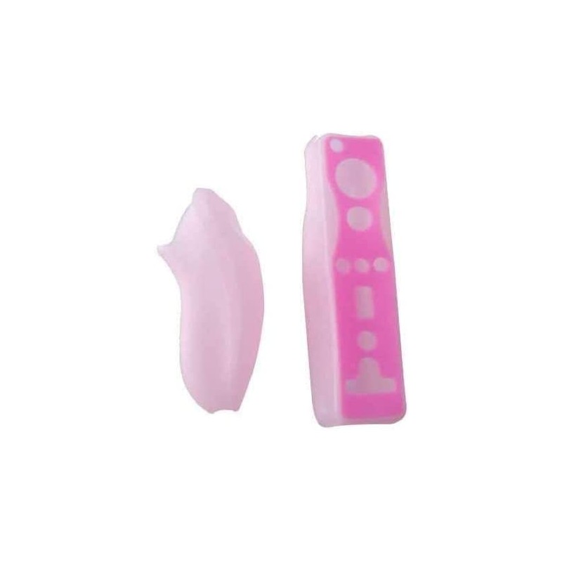 Silicone Rubber Case Protective Soft Gel Cover Skin Shell for Wii Remote Controller for Wii Nunchuk Joystick Silicone Case (Pink)