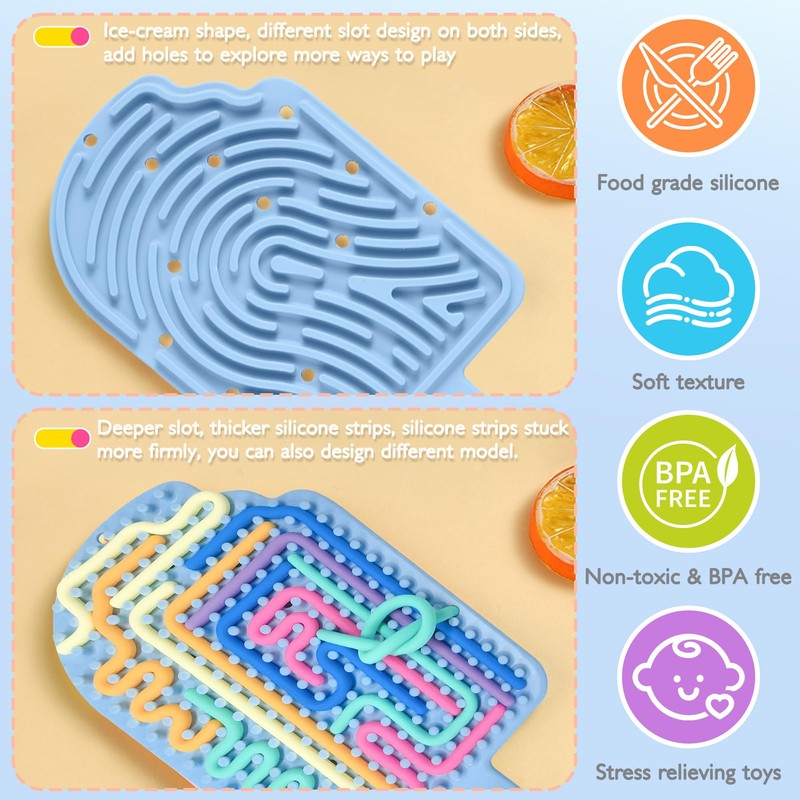 - Stress Relief: This autism sensory toy boast vibrantly colored and visually appealing, specifically designed to ease stress and enhance focus, excellent for sufferers of ADHD, Autism or Anxiety. You can place the silicone strings in the groves in any configuration you want and get satisfaction while having fun. It's the perfect play therapy toys and quiet activity