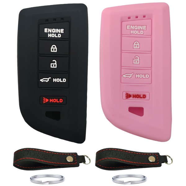 Silicone Smart Push Start Key Fob Cover Compatible with 2022 2023 Acura MDX KR5TP-2 RDX MDX Integra (5 Buttons, Black+Pink)