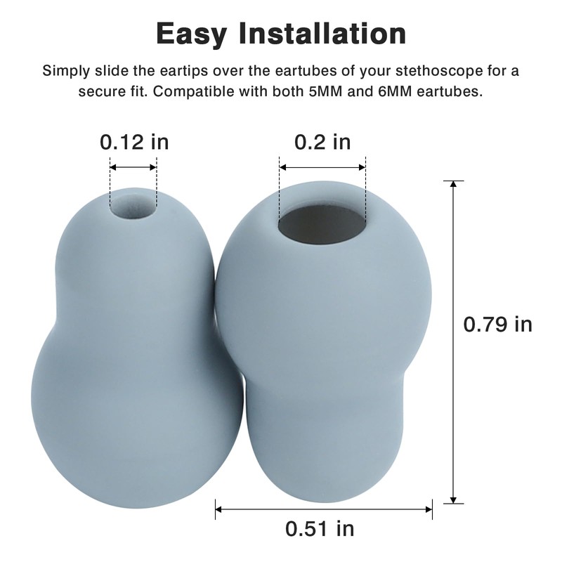 - EASY INSTALLATION: Simply slide the eartip over the eartube of your stethoscope for a secure fit. Compatible with both 5MM and 6MM eartubes. (This eartip is designed as a 5 mm tube installation. If it is a 6 mm tube, please put the silicone eartip in warm water for 20 seconds and then install it.)