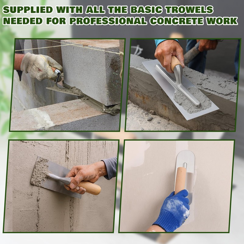 - Versatile Applications: ideal for applying, spreading, leveling, and polishing concrete, cement, plaster, drywall, and other materials; These professional concrete trowel set tools are ideal for various construction and renovation projects